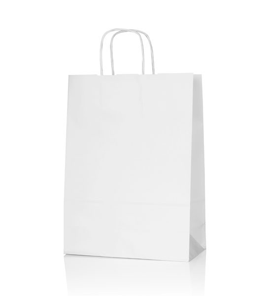 Weiße Kraftpapiertragetasche 24×10×32 cm – unser Bestseller und die umweltfreundliche Verpackungslösung für Unternehmen