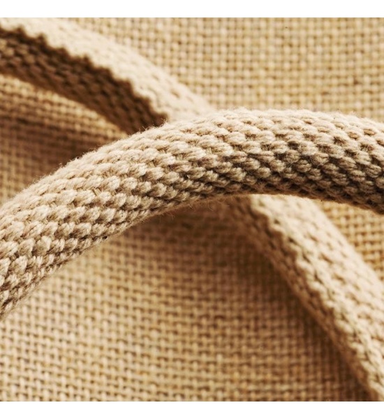 Wytrzymała, elegancka i modna torba wykonana z naturalnego materiału - juty. Juta to włókno produkowane z łodyg rośliny juty oraz wytwarzana z niego tkanina o splocie płóciennym.